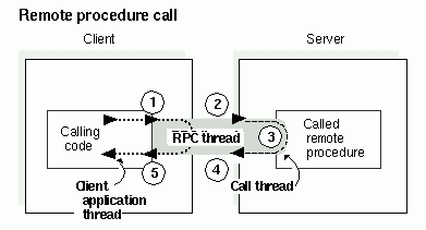3. The RPC thread extends into a call thread, where the remote procedure executes. While a called remote procedure is executing, the call thread becomes part of the RPC thread. When the call finishes executing, the call thread ceases being part of the RPC thread.