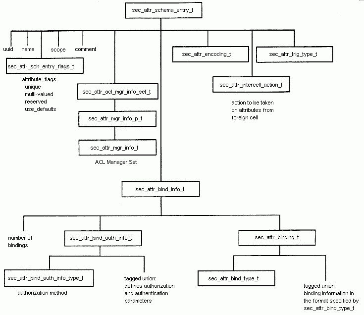 The following figure illustrates the structure of a sec_attr_schema_entry_t data type.