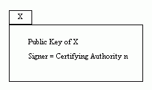 The most important ingredients of a certificate are: the principal name which it is stored under; the public key which it contains; and the signature of the CA that issued it. These can be illustrated as shown in the following figure.